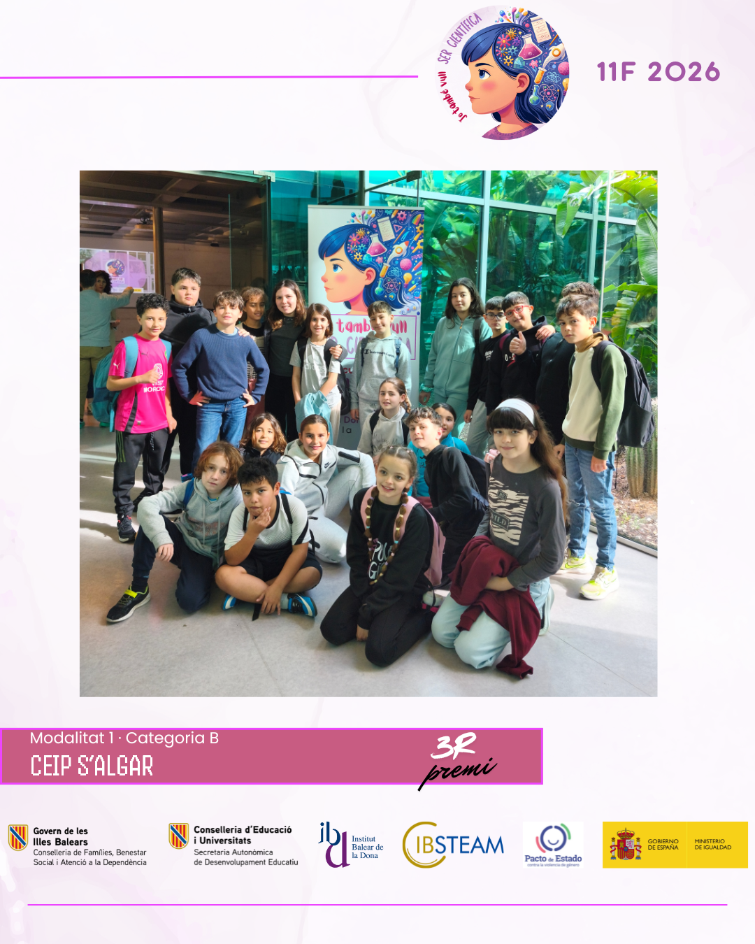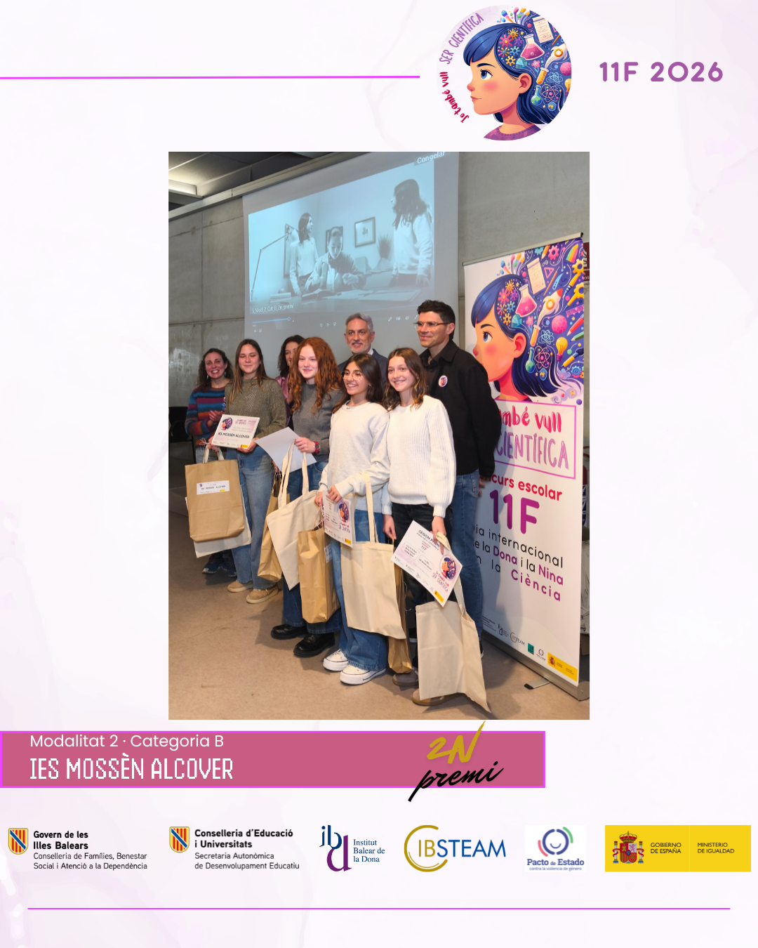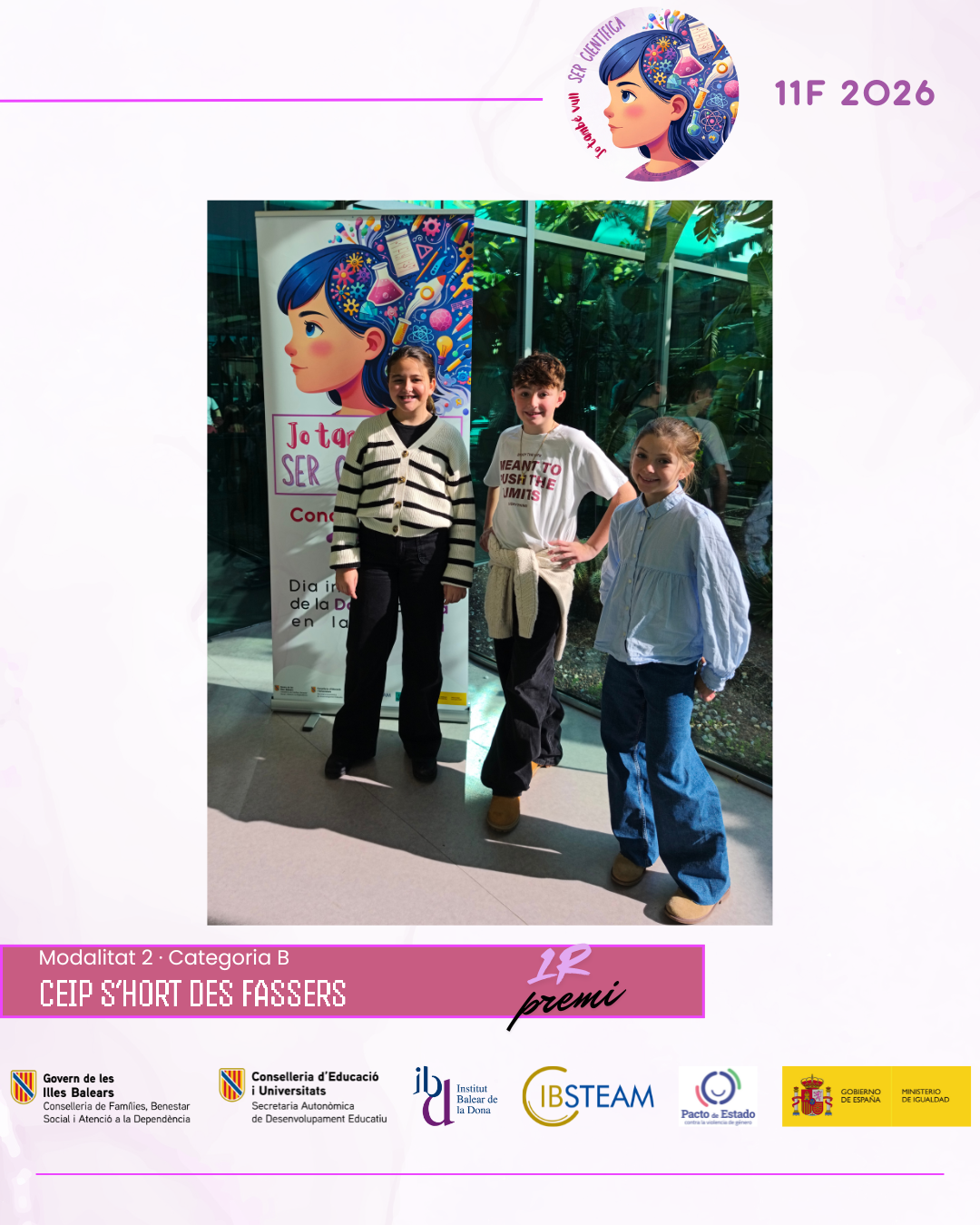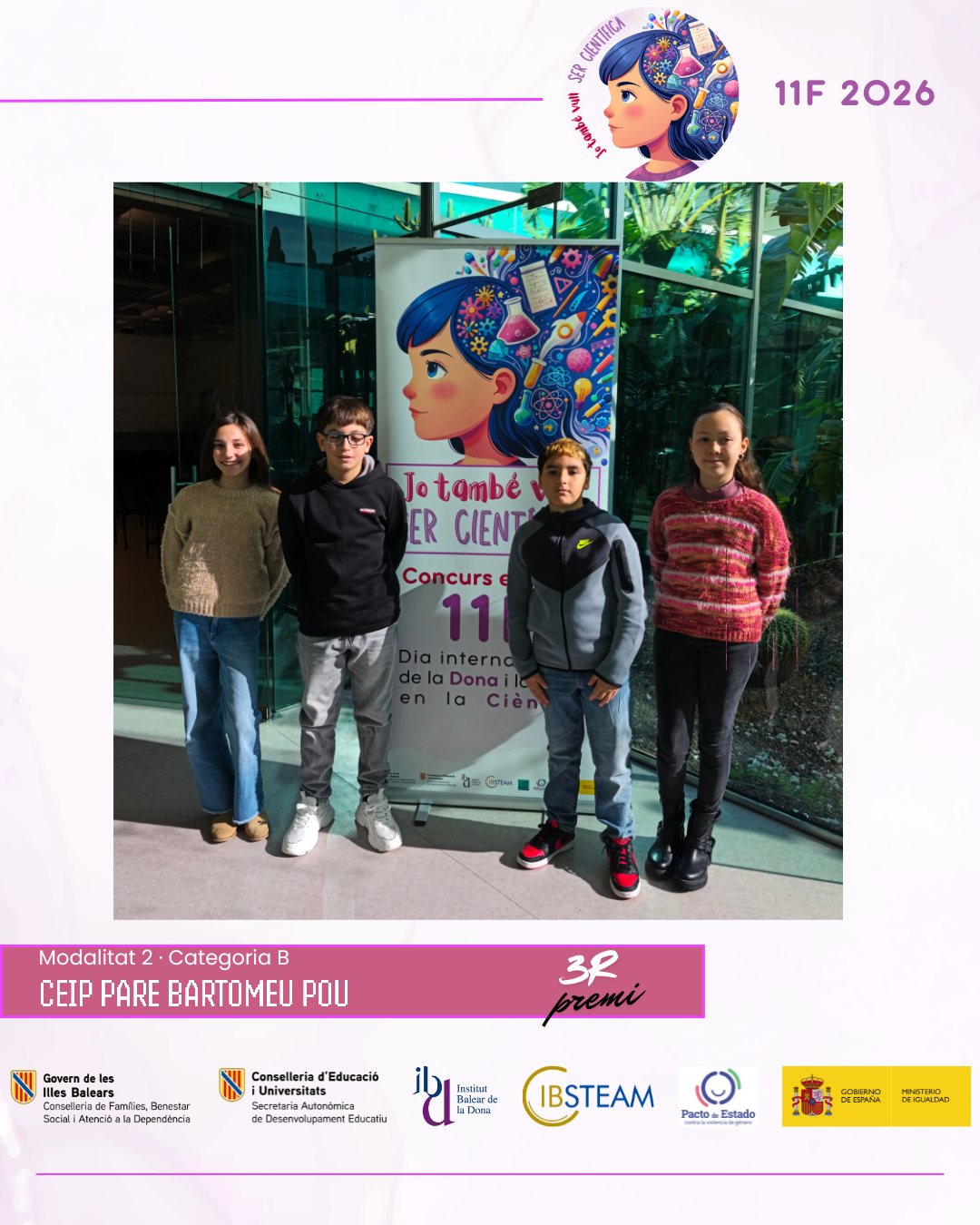 Des d’IBSTEAM volem agrair la implicació de tots els centres participants i la feina desenvolupada a les aules, que fa possible que iniciatives com aquesta continuïn creixent any rere any. La jornada va ser, sobretot, una celebració compartida del talent, l’esforç i el compromís amb la ciència. Convidam els centres educatius a sumar-se a la propera edició del concurs 11F i a seguir despertant vocacions científiques i generant nous referents per a l’alumnat.