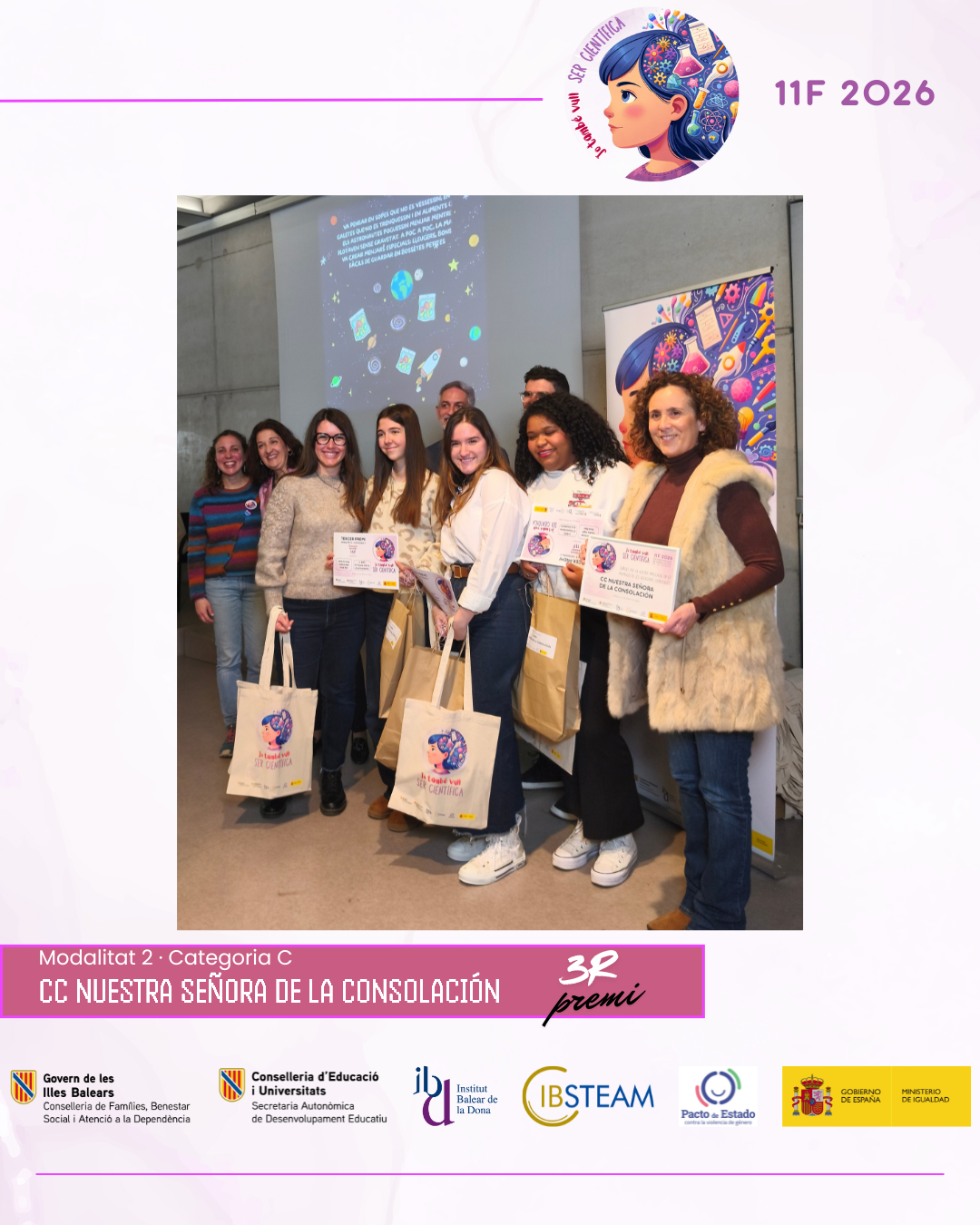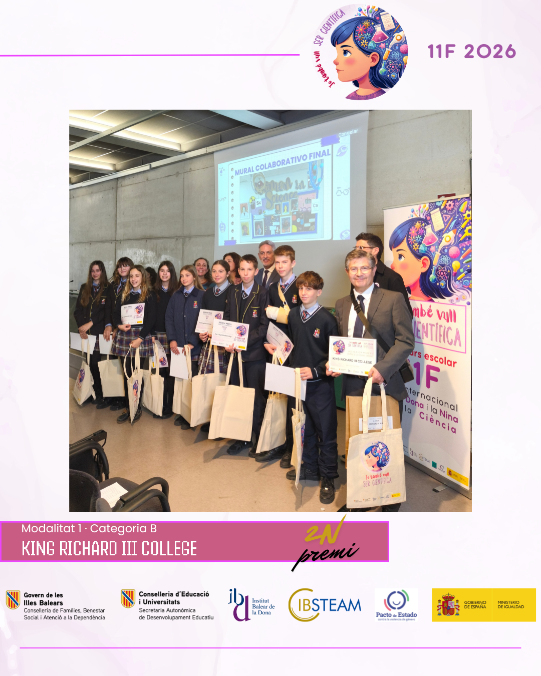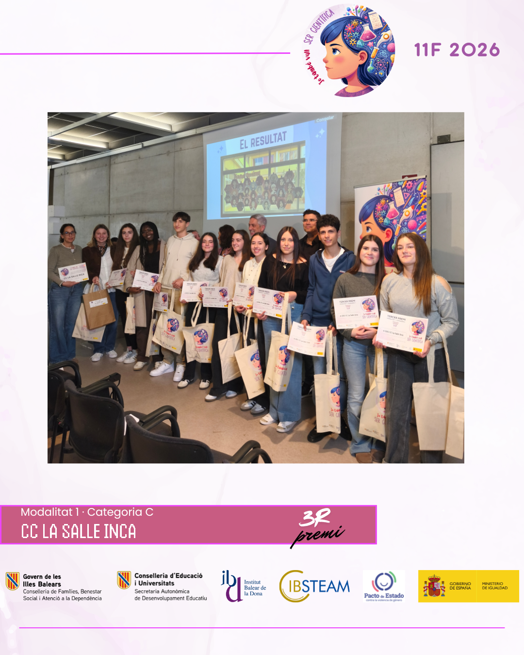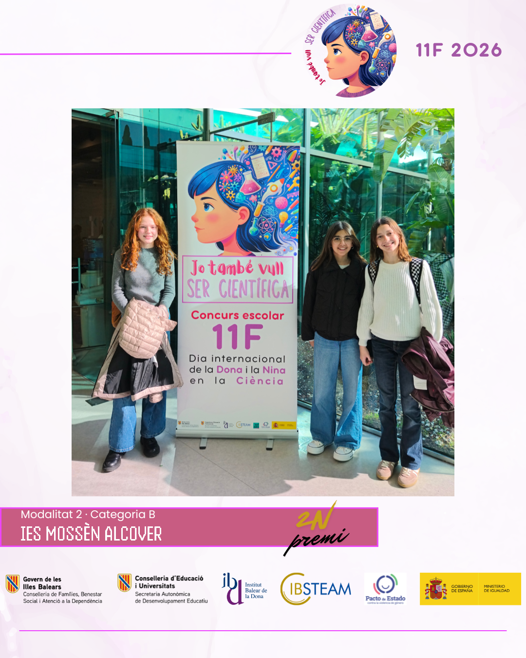 Des d’IBSTEAM volem agrair la implicació de tots els centres participants i la feina desenvolupada a les aules, que fa possible que iniciatives com aquesta continuïn creixent any rere any. La jornada va ser, sobretot, una celebració compartida del talent, l’esforç i el compromís amb la ciència. Convidam els centres educatius a sumar-se a la propera edició del concurs 11F i a seguir despertant vocacions científiques i generant nous referents per a l’alumnat.