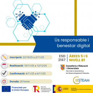 de centres sostinguts per fons públics de les Illes Balears i acredita les àrees 2 i 6 del Marc de Referència de la Competència Digital Docent en un nivell B1 (35 hores).