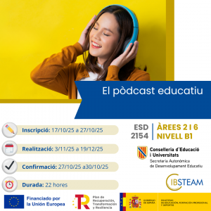 Aquesta formació està destinada a docents en actiu de centres de les Illes Balears, i acredita les àrees 5 i 6 amb un nivell B1 (20 hores).