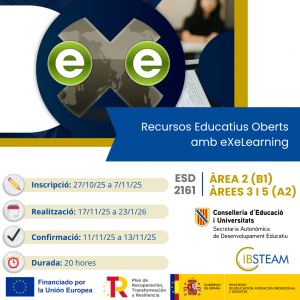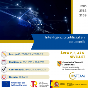 Aquesta formació està destinada a docents en actiu i acredita les àrees 3 i 5 del Marc de Referència de la Competència Digital Docent en un nivell B1 (22 hores).